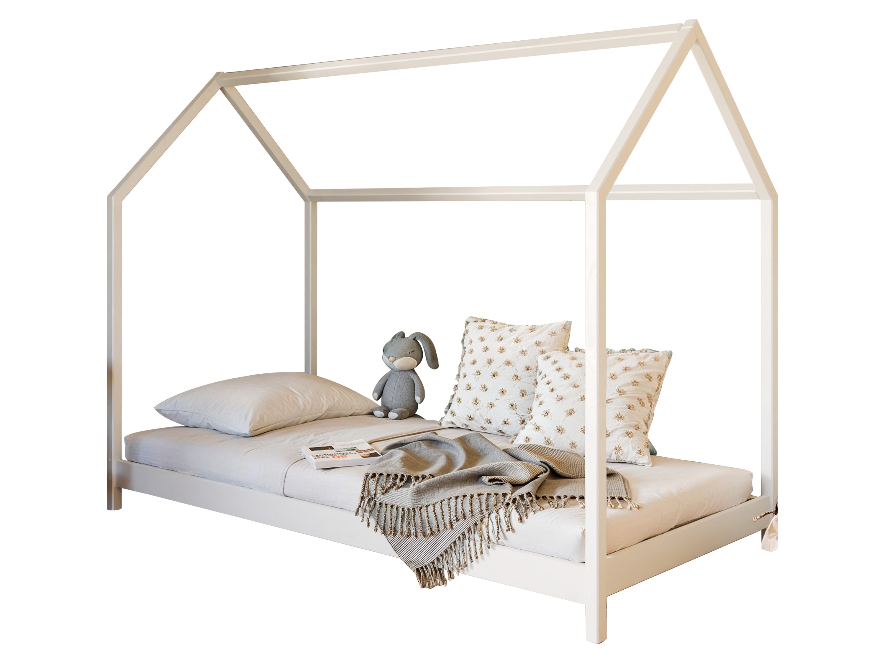 Hausbett-Design mit Himmel | Lattenrost | Optional mit Matratze | 90 × 200 cm