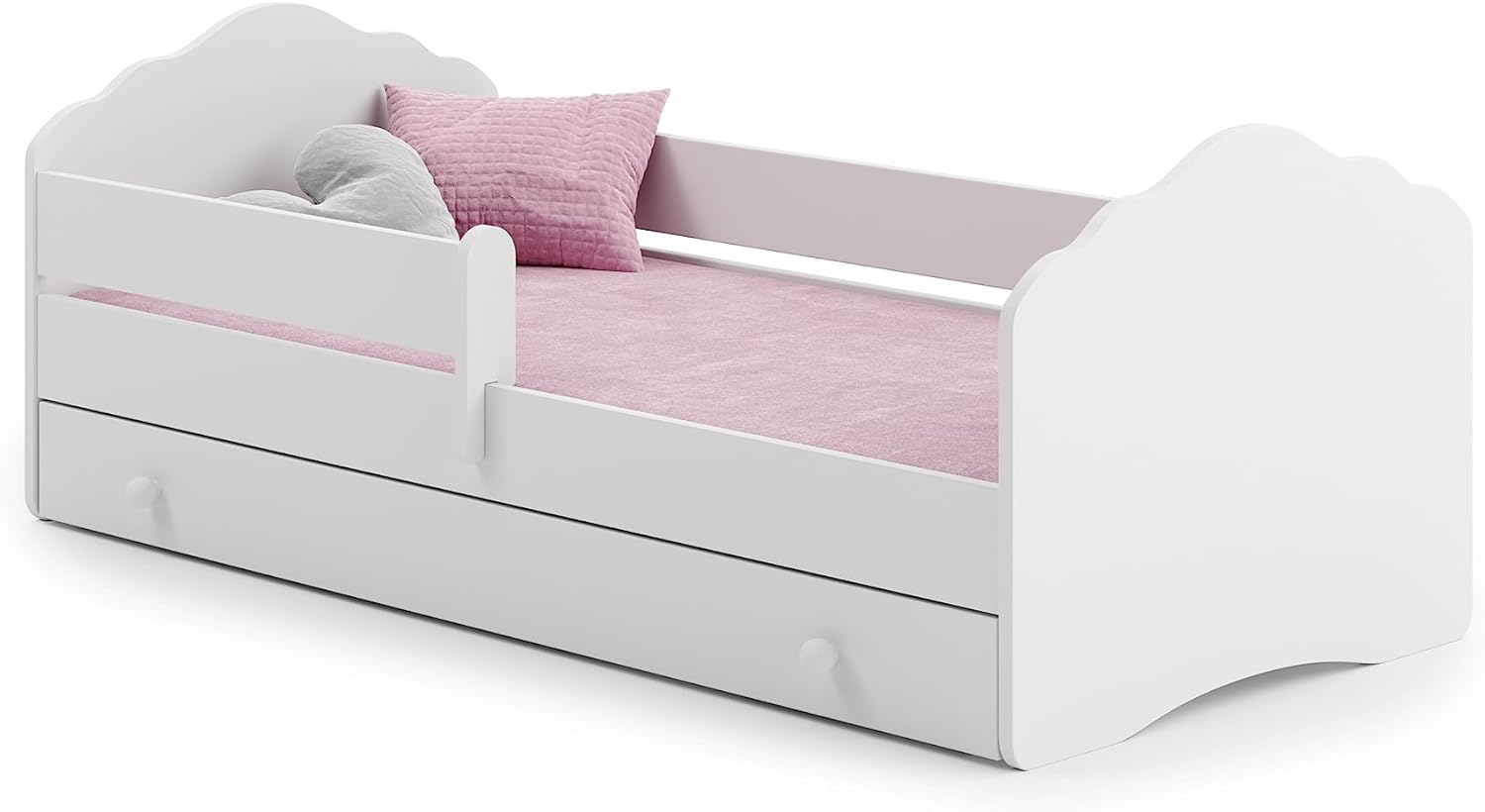 Mit Matratze & Schublade | Rausfallschutz & Lattenrost | Weiß, Pink oder Blau | 80 × 160–180 cm