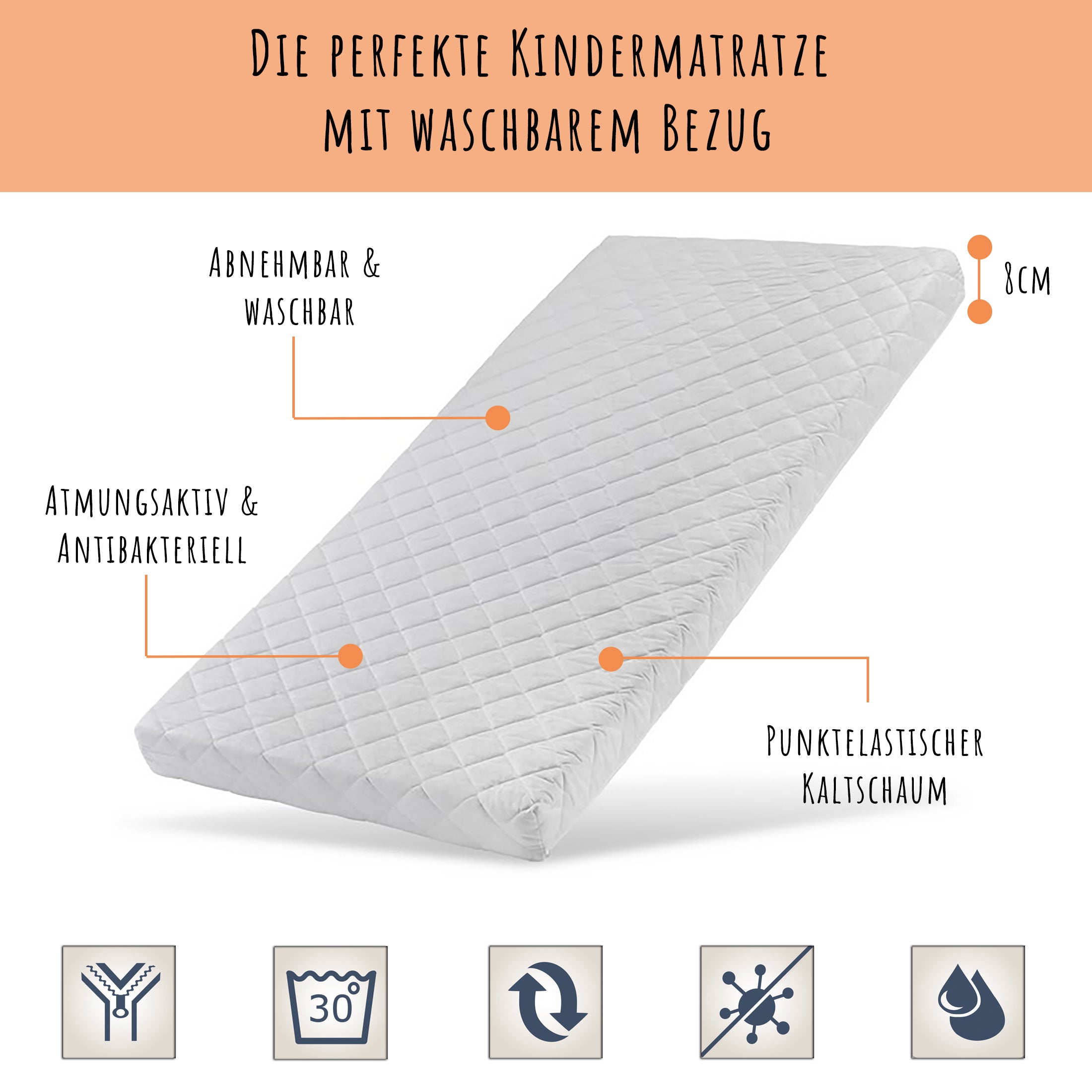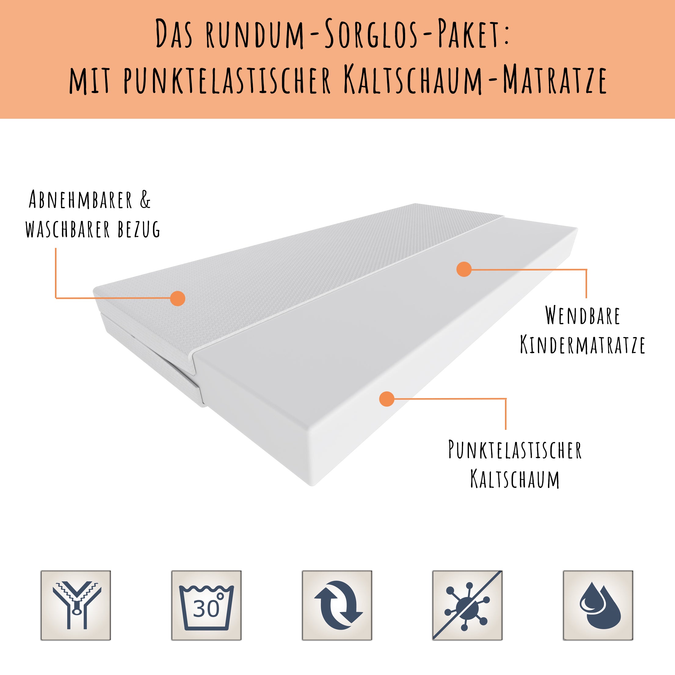 Mit Matratze & Schublade | Abnehmbarer Rausfallschutz | Komplett-Set | 70–80 × 140–160 cm