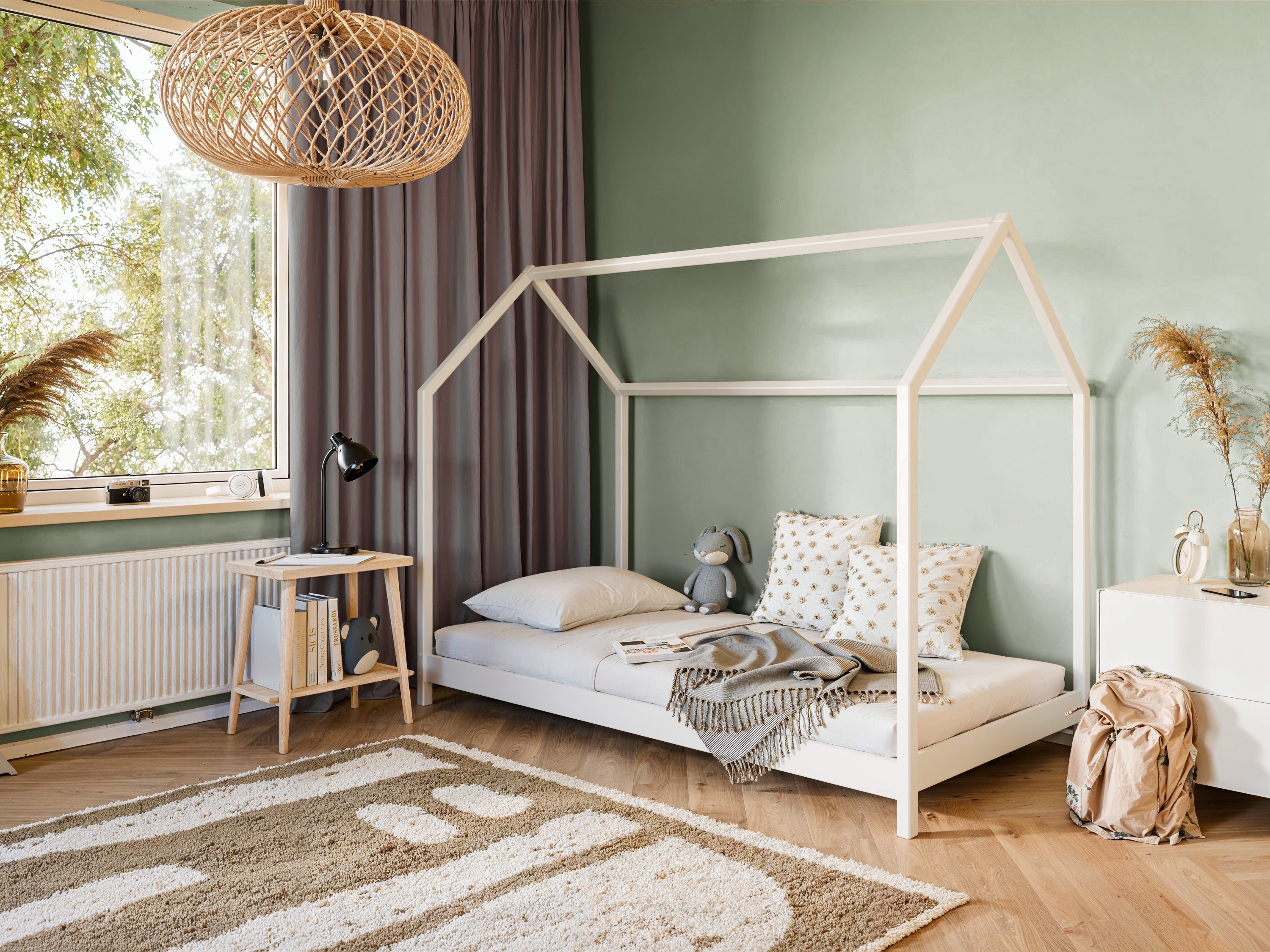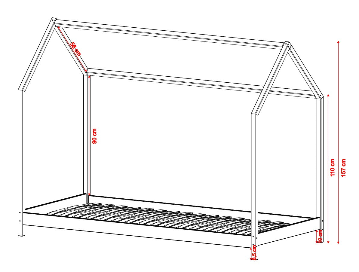 Hausbett-Design mit Himmel | Lattenrost | Optional mit Matratze | 90 × 200 cm
