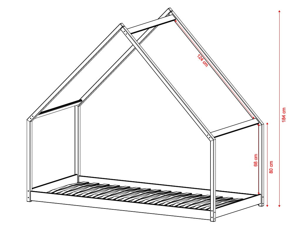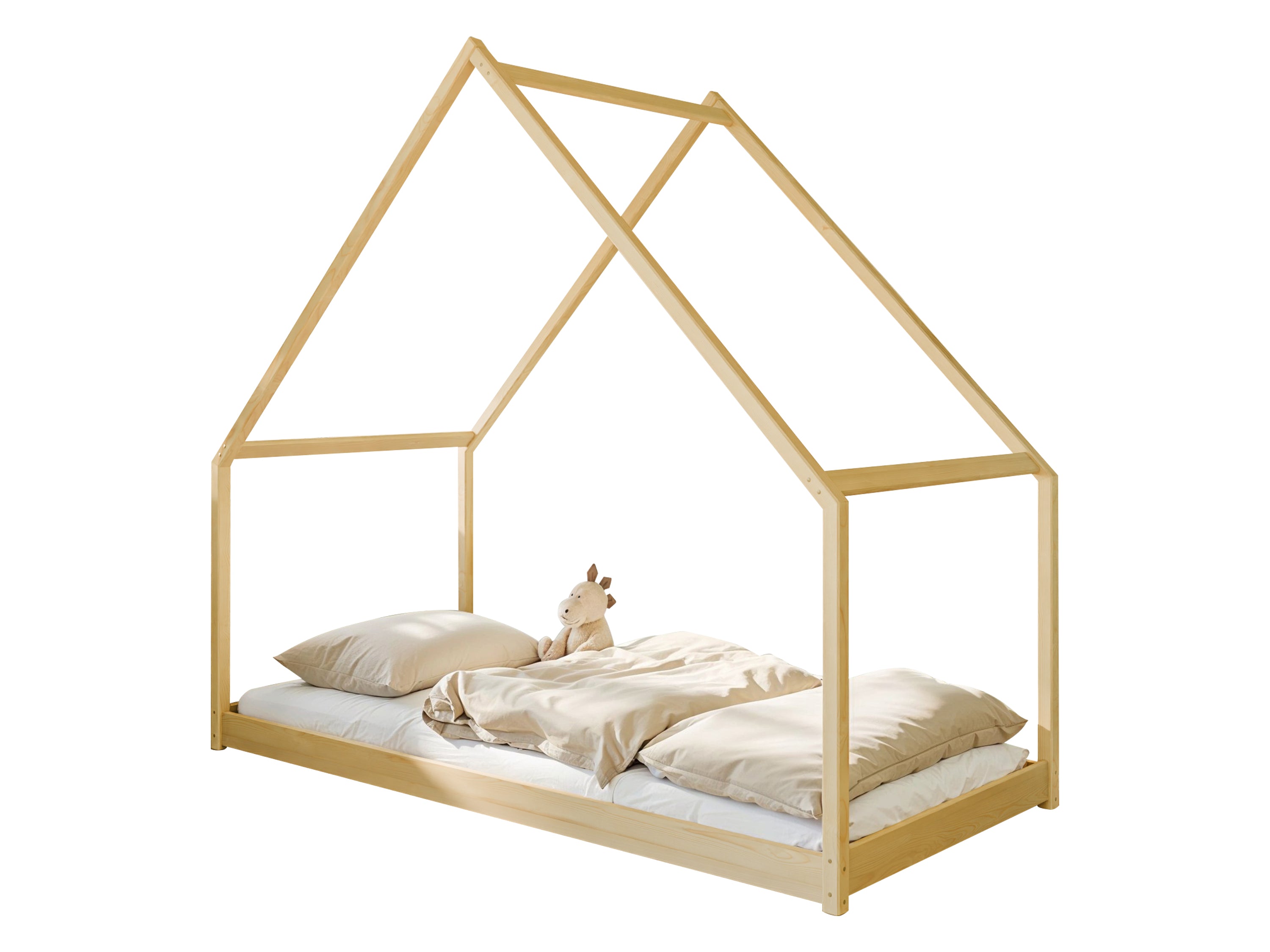 Hausbett-Design mit Himmel | Lattenrost | Optional mit Matratze | Kiefer massiv | 90 × 200 cm