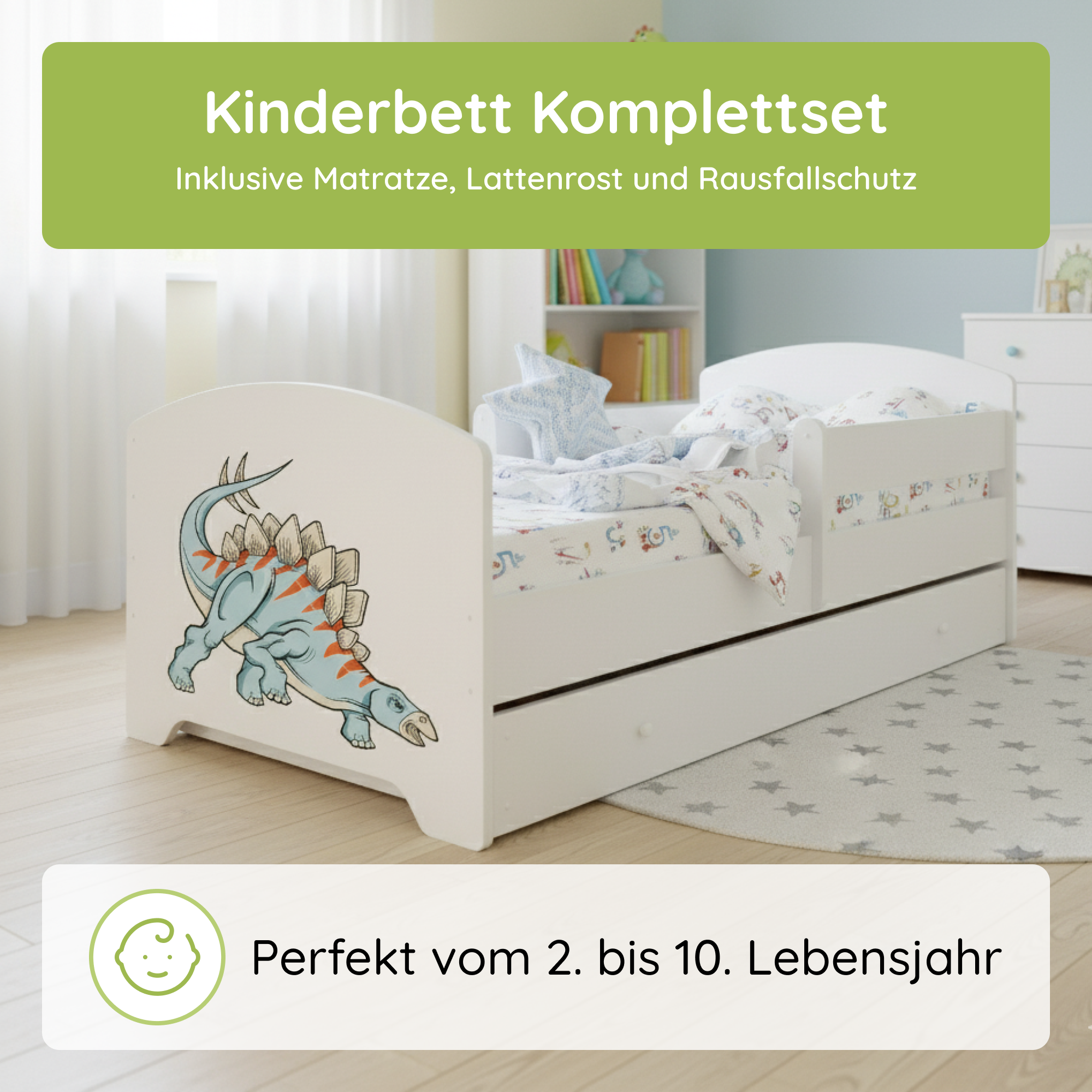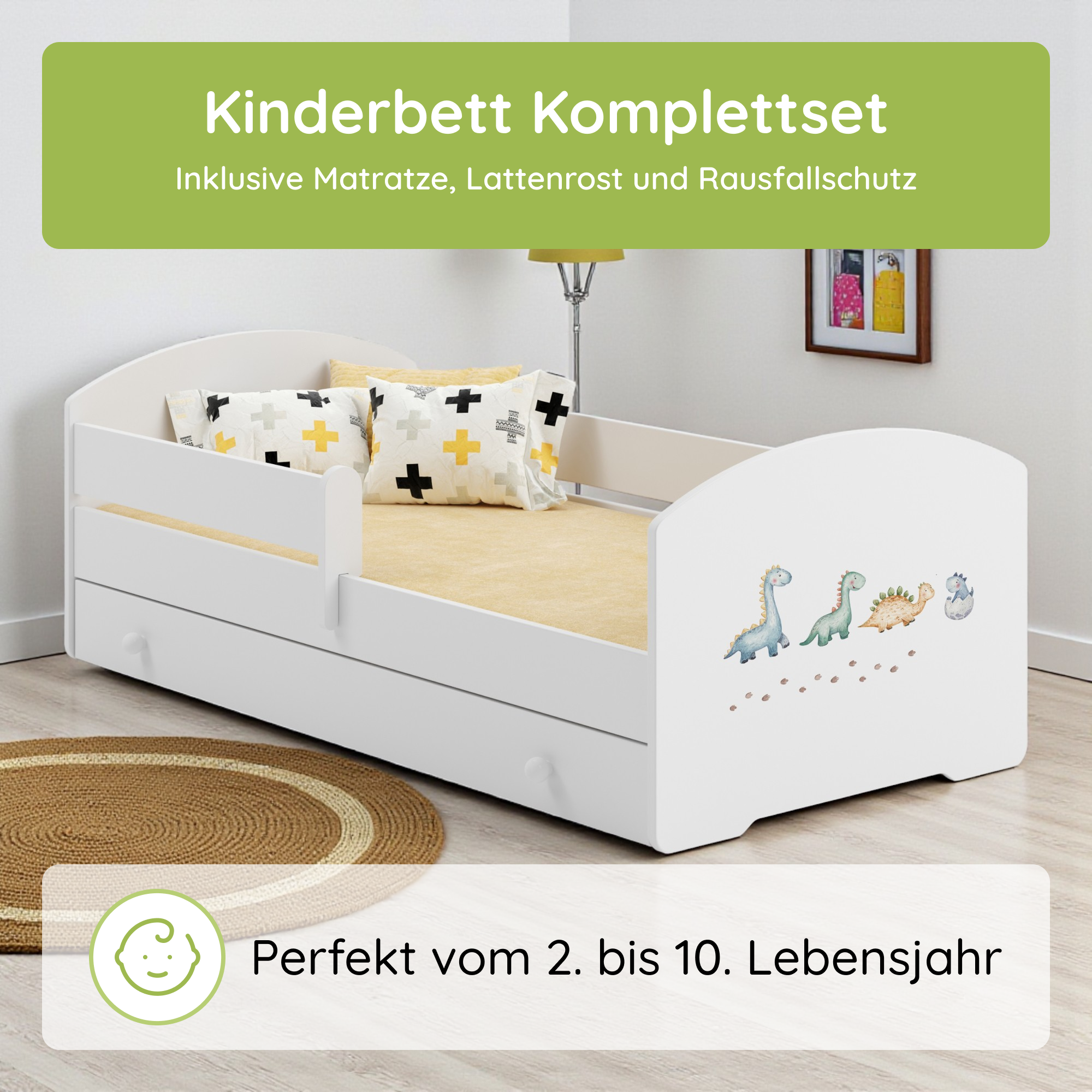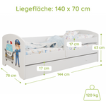 Komplett-Set | Matratze, Lattenrost & Schublade | Wählbares Motiv | 70–80 × 140–160 cm