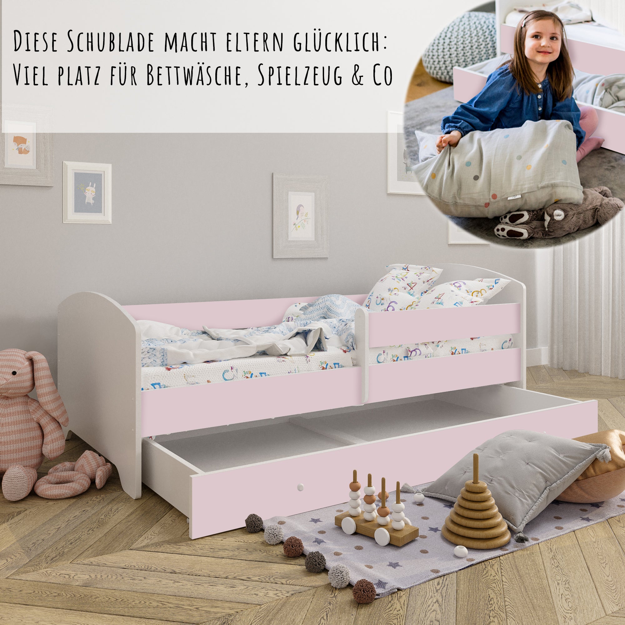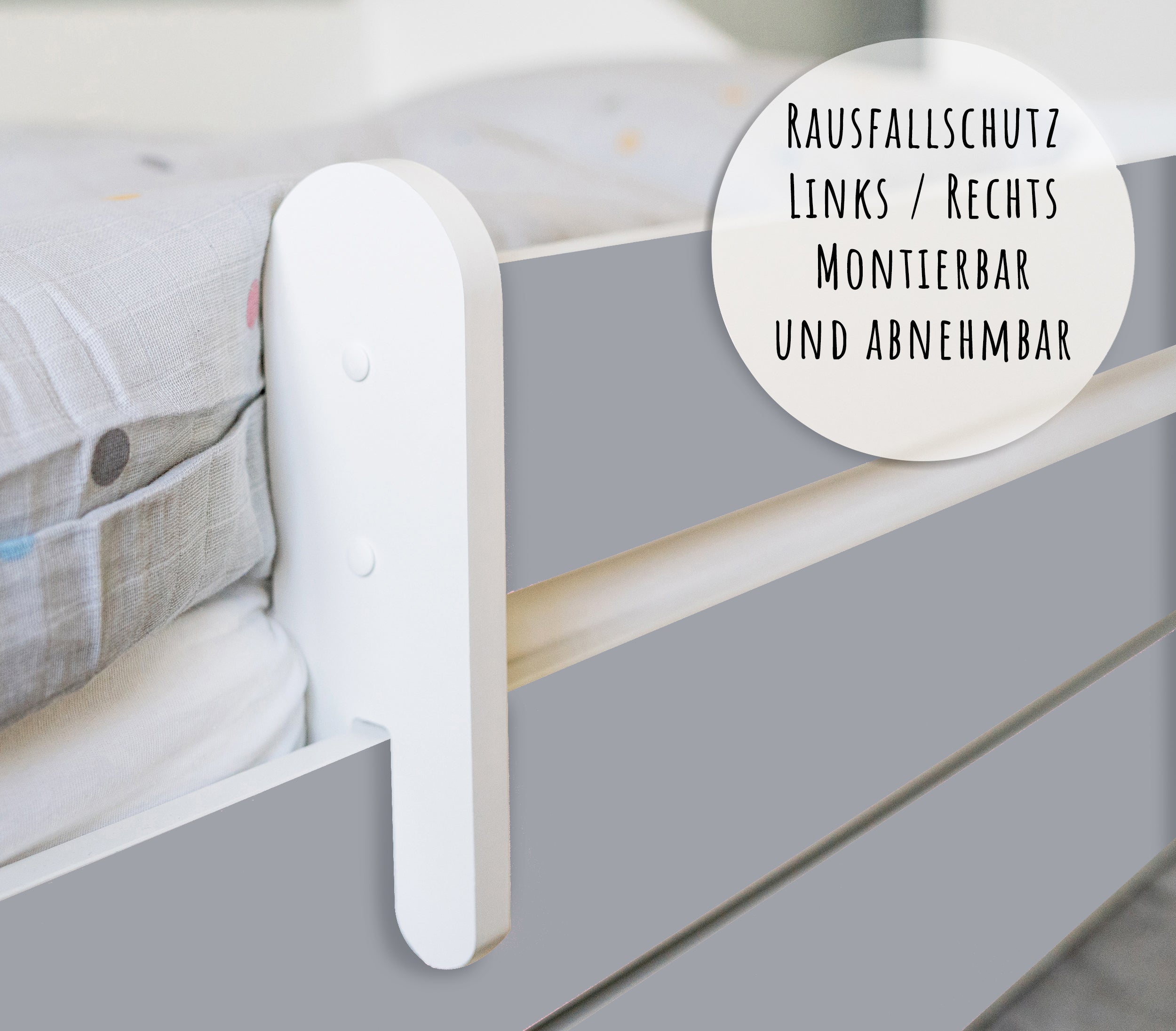 Dieses Bett ist stilvoll und vor allem sicher! Die Seitengitter geben mir ein beruhigendes Gefühl. Mein Kind liebt es.