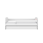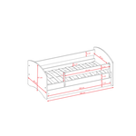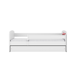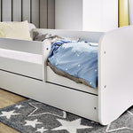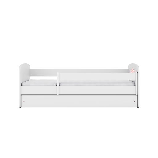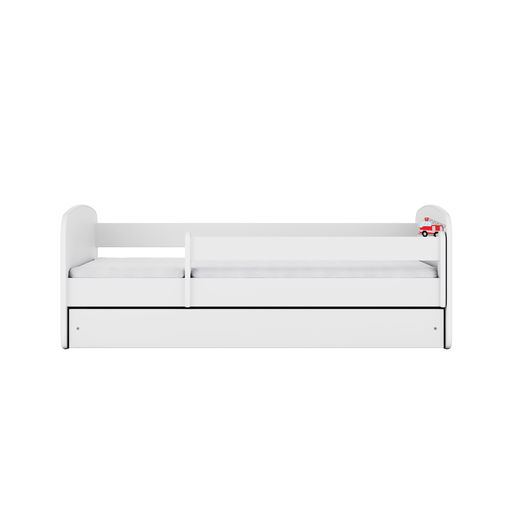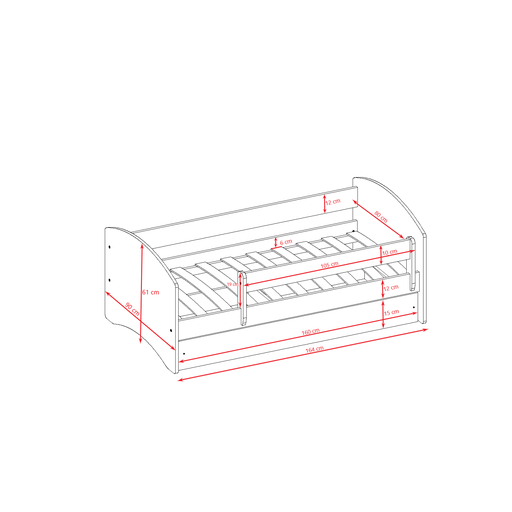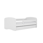 Dieses praktische Funktionsbett lässt Kinderherzen höher schlagen. Das aus hochwertigem MDF-Holzwerkstoff gefertigte Bett ist absolut stabil und sicher, sodass auch beim Toben oder nächtlichen Träumen nichts passieren kann. Der Lieferumfang dieses Bettes überzeugt auf ganzer Linie: Kinderbett, passende Kaltschaummatratze, Lattenrost, Schublade für Bettzeug, Kissen oder Spielzeug, sowie der abnehmbare Rausfallschutz, damit auch die Eltern nachts ruhigen Gewissens zu Bett gehen können. Die Kanten und Bettfronten sind zum Schutz vor Verletzungen abgerundet.