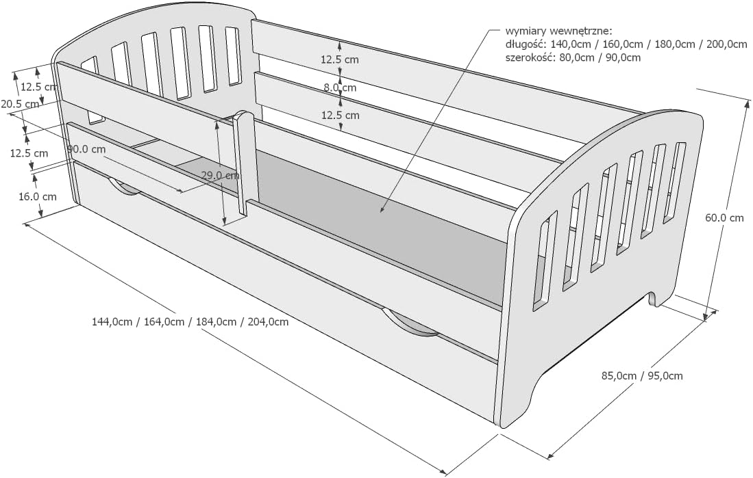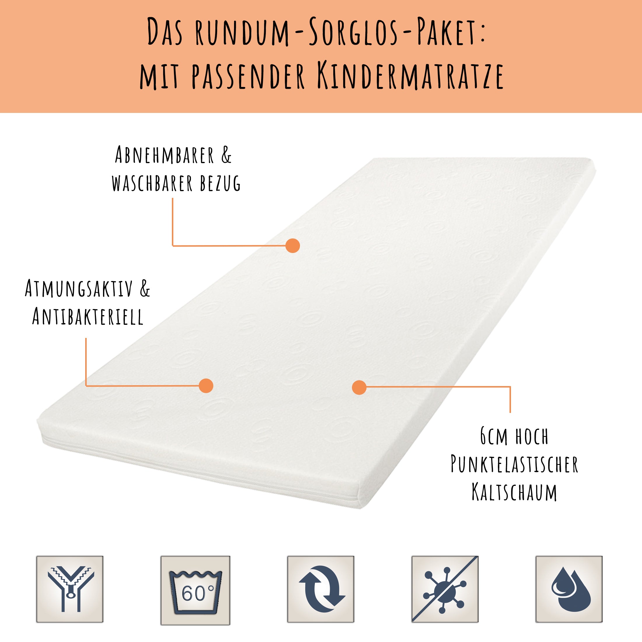 Entdecken Sie das hochwertige Kinderbett, das Ihren Ansprüchen an Qualität, Stabilität und makellose Verarbeitung gerecht wird - alles Made in Europe! Dieses Kinderbett wurde mit Liebe zum Detail entworfen und garantiert eine sichere und gemütliche Schlafumgebung für Ihr Kind.
