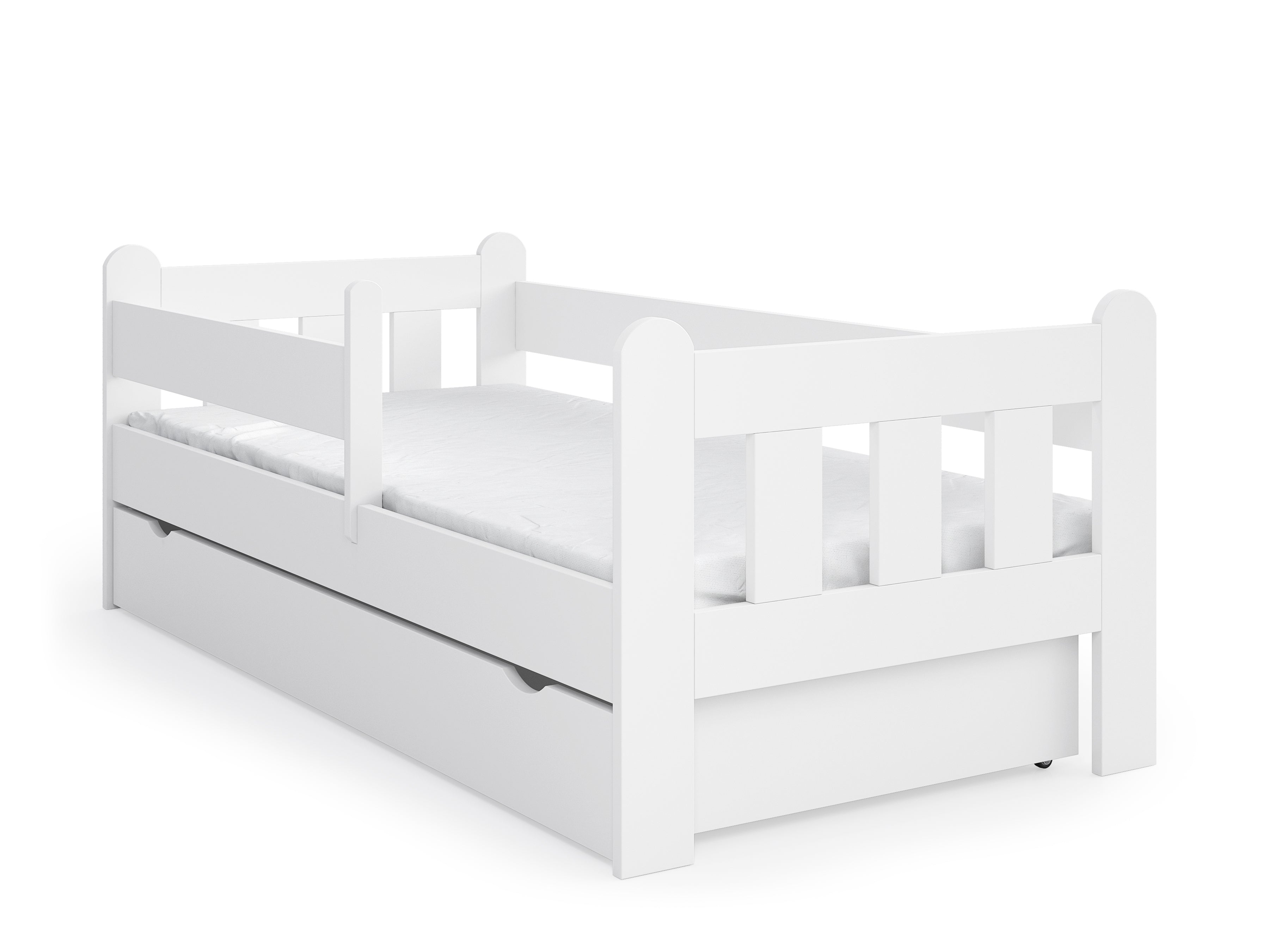 Rausfallschutz & Schublade | Optional mit Matratze | Weiß | 80–90 × 160–200 cm