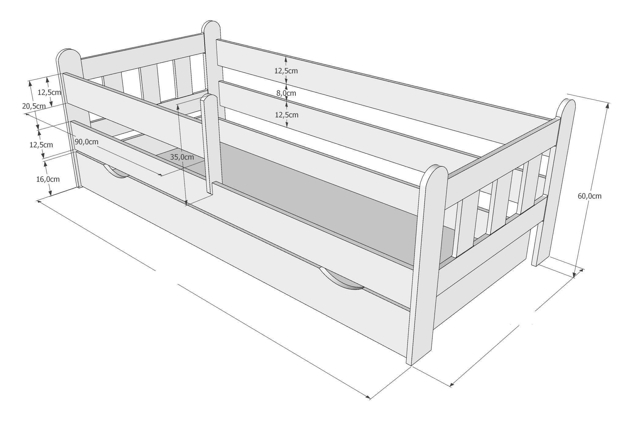 • Lieferumfang: Kinderbett, Schublade, Lattenrost