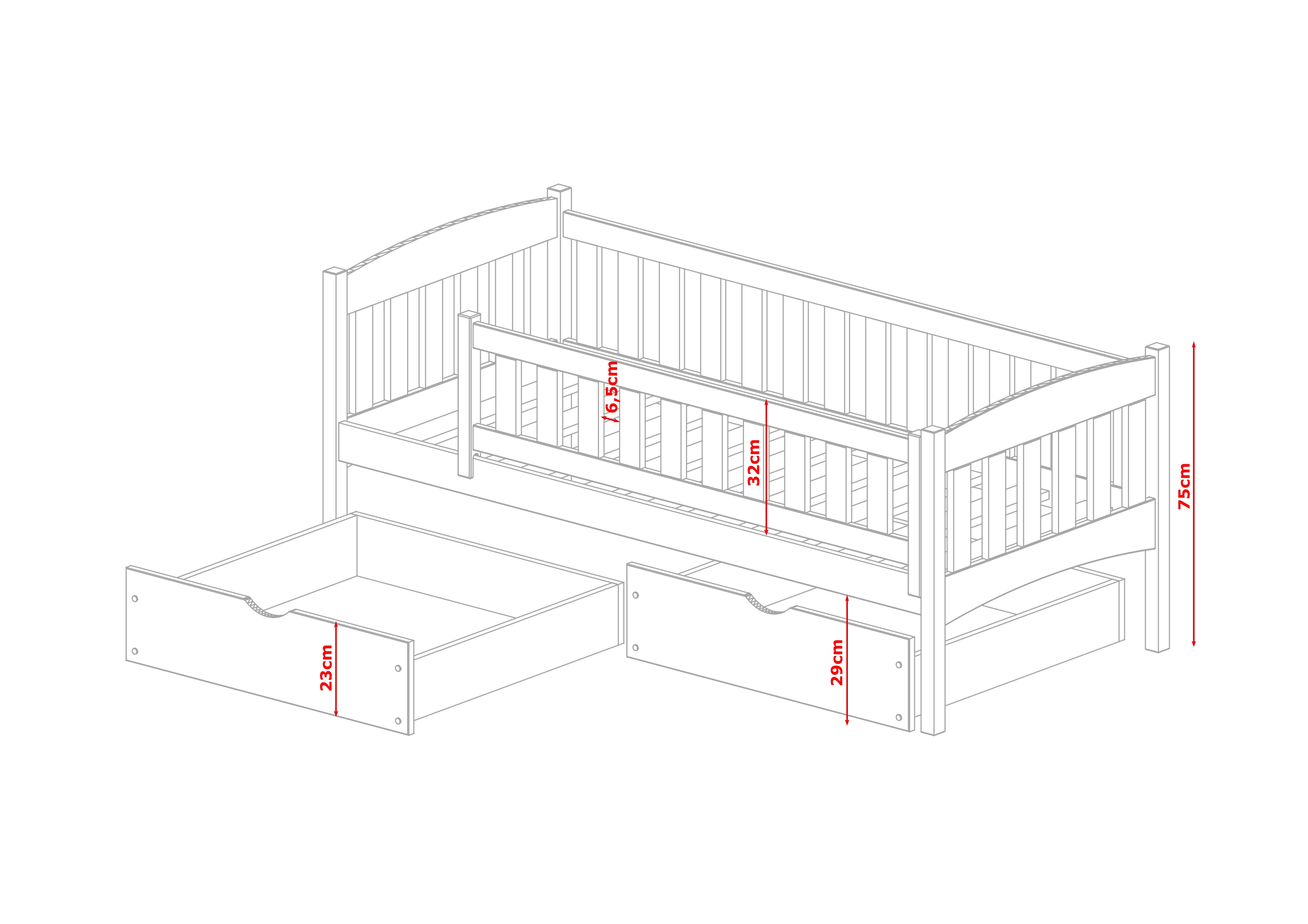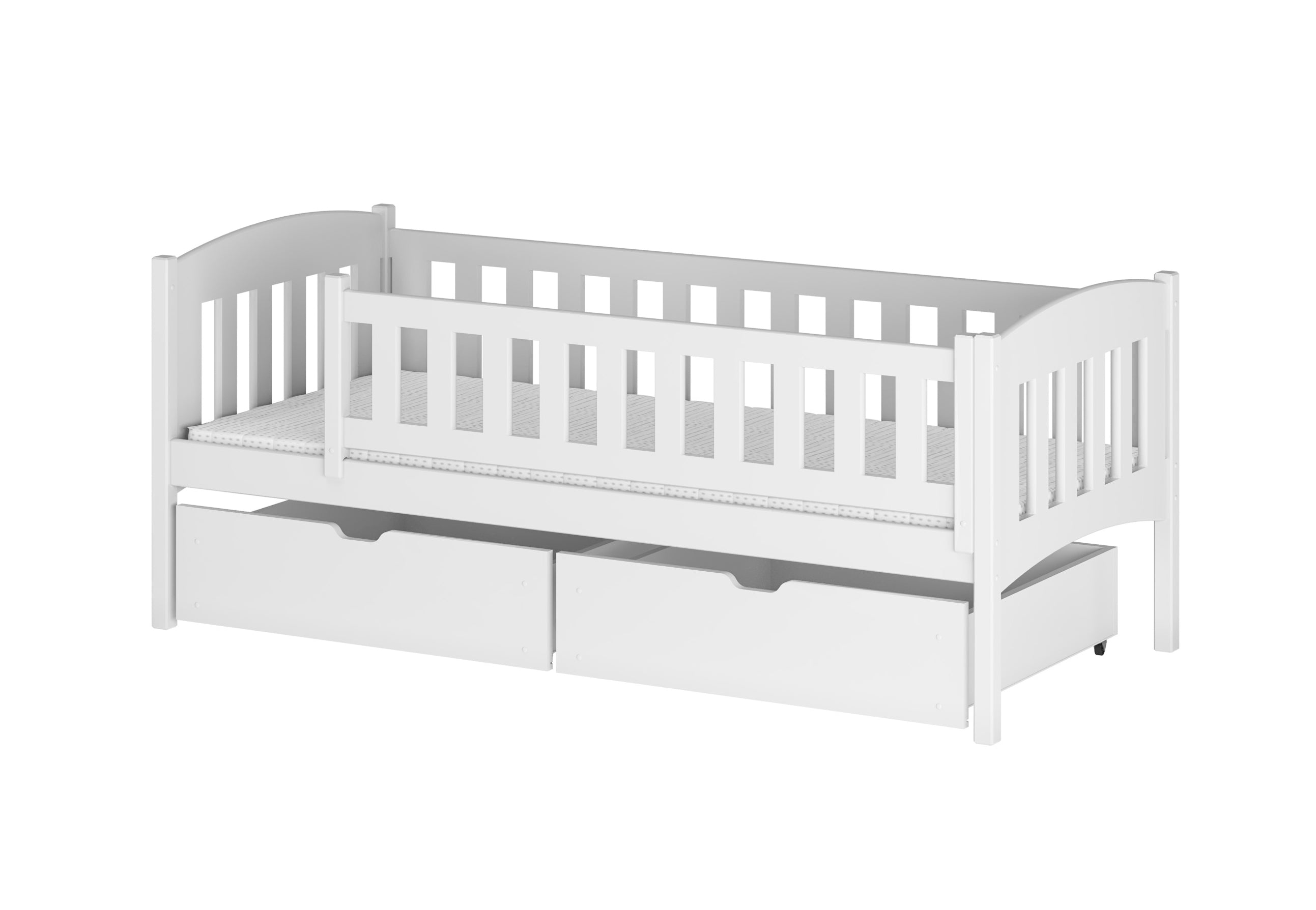 Dieses praktische Einzelbett lässt Kinderherzen höher schlagen. Das außergewöhnliche Design und die hochwertige Verarbeitung aus Kiefernholz zeugen von gutem Geschmack und der Lieferumfang dieses Bettes überzeugt auf ganzer Linie: Rausfallschutz, zwei Schubladen für Bettzeug, Kissen oder Spielzeug und ein passendes Lattenrost ist auch im Lieferumfang enthalten.