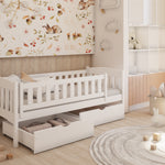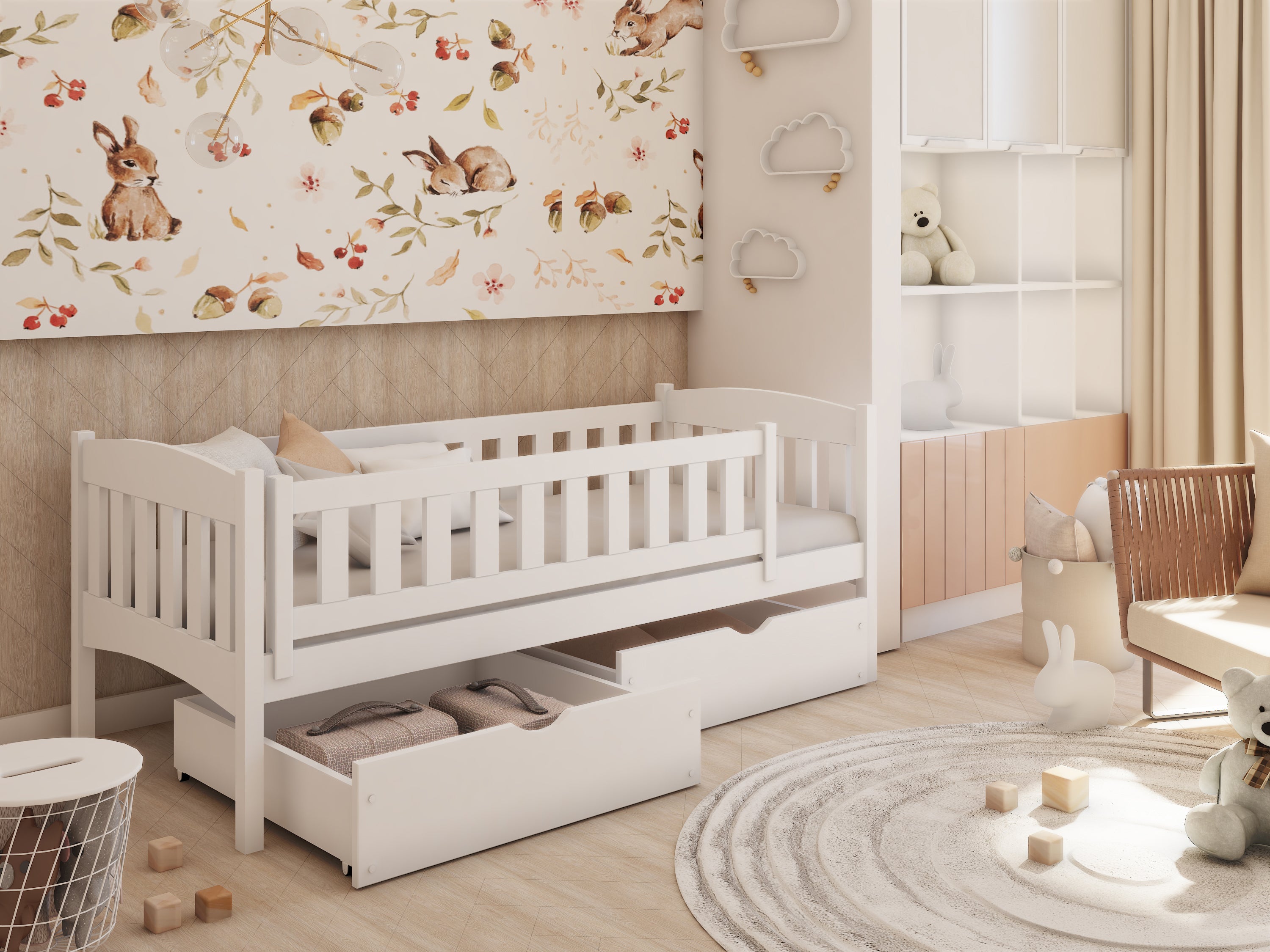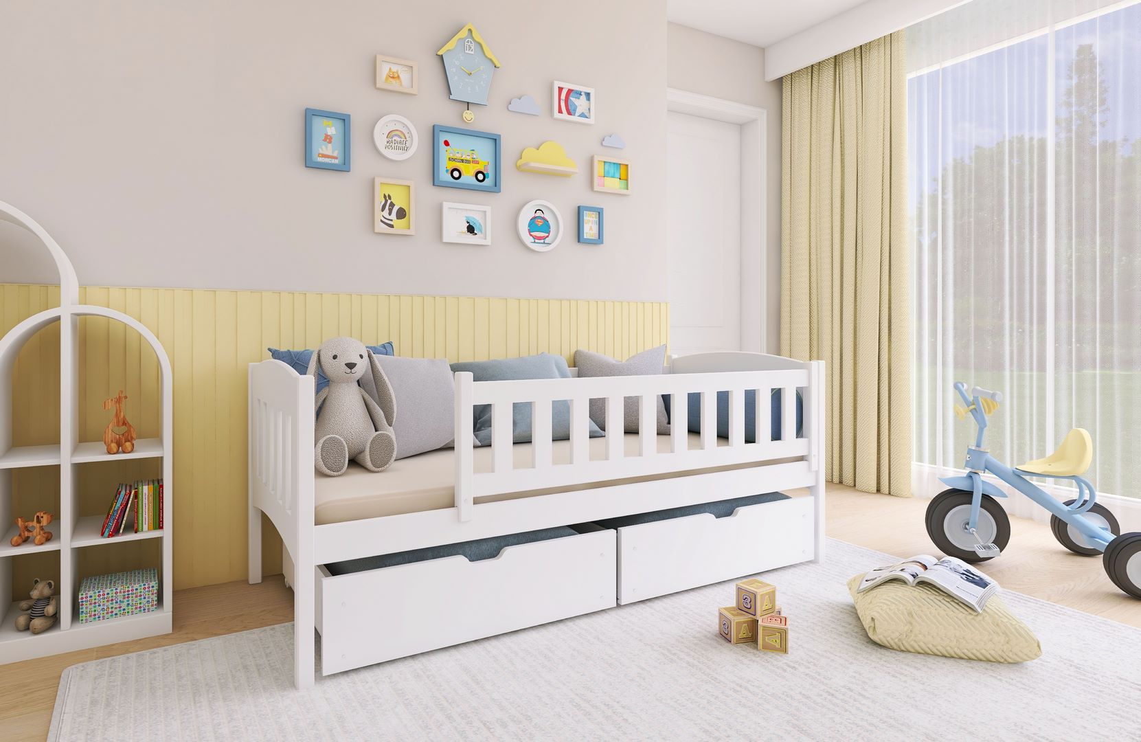 2 Schubladen & Rausfallschutz | Vollholz massiv | Optional mit Matratze | 90 × 200 cm