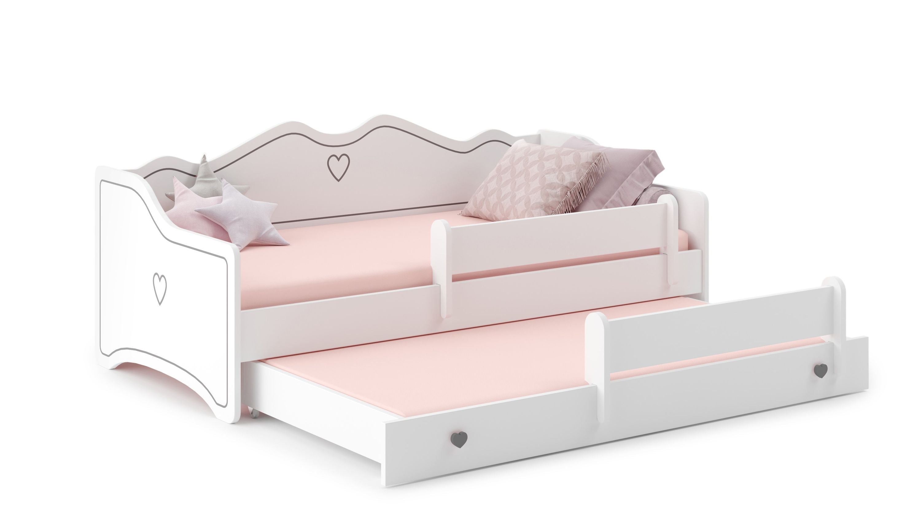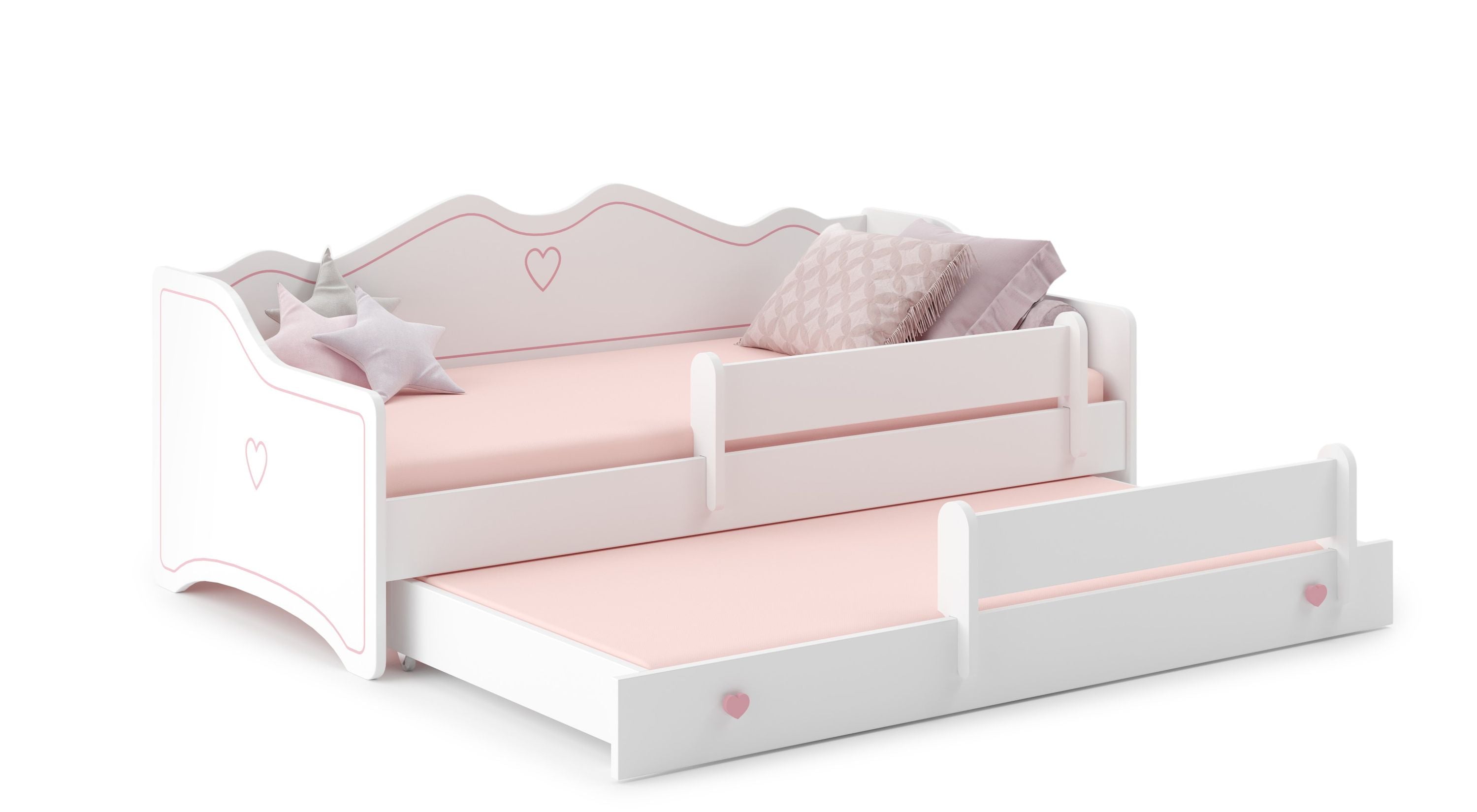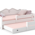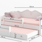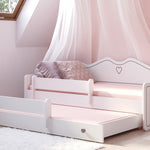Ausziehbett & 2 Matratzen | Prinzessin-Design | Rausfallschutz | Weiß-Pink | 80 × 160 cm